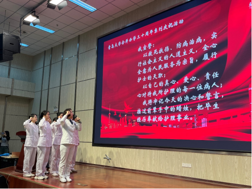 最后,与会师生在李春荣老师的带领下,共同庄严宣誓南丁格尔誓言,我们将以南丁格尔誓言鞭策自我,勉励自我,将南丁格尔精神铭记于心。至此,大会在一声声激昂的誓言中完美落幕。