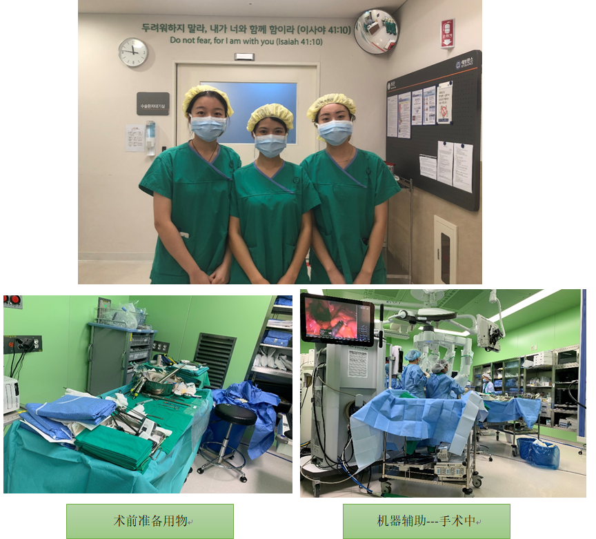 10.30日,我们参观了延世大学Cancer hospital的手术室。进入手术室之前,我们换上了科室专用的拖鞋和衣服,洗手并戴好帽子和口罩。在老师的带领下,对手术室的建筑布局和运转流程进行了大体的参观。老师为我们详细讲解了各个领域及各种仪器设备的具体功能。然后,我们参观了在达芬奇机器辅助下,医护配合进行直肠癌和乳腺癌的切除术。