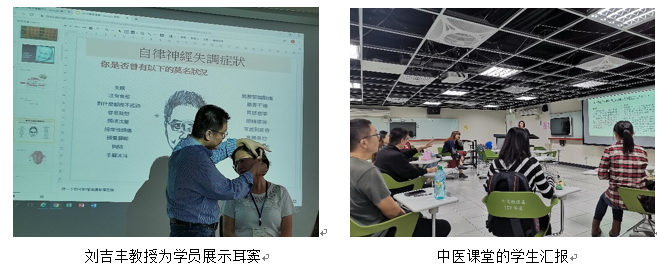 我们还有幸认识了中西医结合专业的刘吉丰教授,他热情地邀请我们旁听中医学生的汇报,如何通过足底、舌头及面相诊断身体状态,并且在他开授的健康管理师培训课程中,我们了解人体穴位,了解他创立的慈悲医学,感受耳窦等疗法,是我们在学习计划外的宝贵收获,也感受到了来自台北护理健康大学老师的热情。