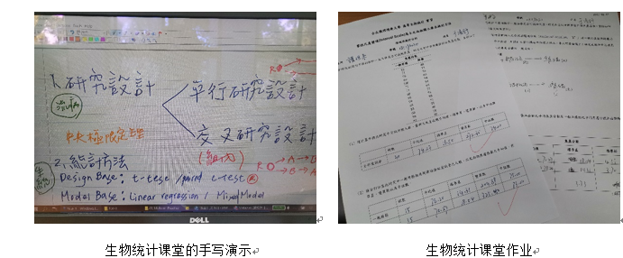 统计课堂由老师与助教同时进行,老师负责讲解理论,助教通过手写板将知识点呈现在每个同学的电脑上,并且在每节课后二十分钟左右,会进行当堂练习。学生进入学校系统下载练习资料,由助教展示SPSS的操作过程,随后由学生练习,并完成每节课的小测。