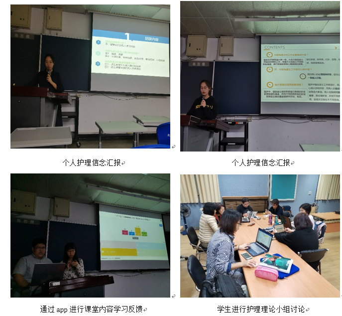 在护理理论的课堂上,同学们通过前期与家人、朋友或医院其他工作人员的访谈,了解非护理人员对待护士的看法,并在与其交谈的过程中,向其阐述自己的护理信念,以及对人、环境、健康、护理四个概念的理解。在上次课中,同学们讲解了华生的人文关怀理论,并且将课堂内容以题目形式保存在app中,大家通过扫码答题,拼手速,拼准确率,既是游戏同时也是学习反馈的过程,我觉得这对我们以后的研究生课堂也是很好的启发。