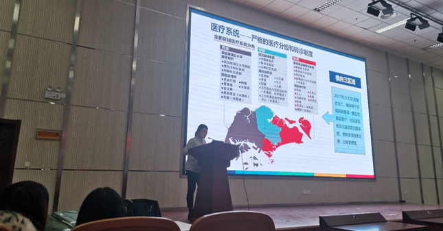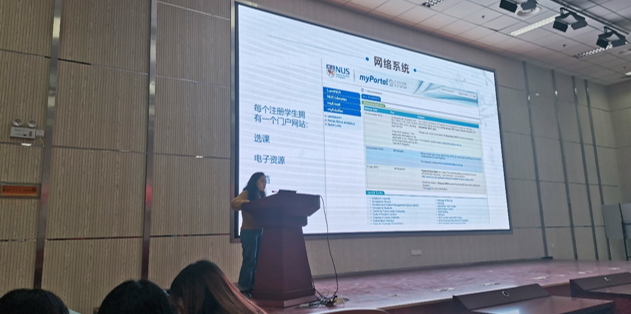 赴新加坡国立大学访学的四位同学也分享了自己的学习经验。2018级研究生张嫣然同学从发展历史、校园环境、校园文化等方面对新加坡国立大学的基本情况进行了详细的介绍,同时也分享了自己的学习心得,并对同学们表达了自己的祝福;2017级研究生王广宁同学对这次访学的课程学习进行了简单的介绍,并且认为出国访学固然是对学生学习能力的历练与提升,但这种经历更大的帮助应该是体现在对国外优势学科资源的把握与吸收上;李润泽同学分享自己在科研方面的经历与心得体会,并对Meta的步骤进行了简单的介绍,内容多用中英文展示,有利于大家对类似英文文献的理解;赵梦璐同学展示了新加坡的风土人情和医疗系统特色,就大家感兴趣的美食与旅游提供了一些可行性建议,并对新加坡的医疗系统组成和护理模式做了简单的介绍。