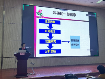 讲座中周兰姝教授围绕“研究生科研设计”这个话题,首先对研究生课题的整体框架作了全面的线性梳理,对科研的一般程序包括“选定问题”、“研究设计”、“实施研究”及“分析总结”等结合案例进行深入浅出的分析。随后从研究生论文的主要框架,包括“目录”、“中英文摘要”、“关键词”、“前言”、“文献综述”以及论文的“主体部分”进行细致的讲解和剖析。此次学术交流,不仅拓展了师生的研究思路,而且为规范学位论文,避免写作过程中出现的问题奠定了重要基础。