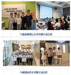 先后与瑞士、美国、新加坡、澳大利亚、韩国、台湾地区的高校建立实质性交流合作关系,2021年与新加坡国立大学签署中外合作办学协议。聘请美国北卡罗来纳大学、新加坡国立大学知名专家作为学院客座讲授,举办或承办国际学术会议。资助10名研究生赴新加坡国立大学、韩国延世大学等国外知名高校进行短期联合培养,人才培养国际化水平逐步提高。