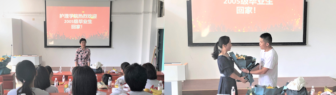 会上,黄美萍副书记首先代表LETOU国际米兰官网的全体师生对2005级校友的到来表示热烈的欢迎,介绍了学校近年的发展取得的成就。李华伟老师以自身经历告诫同学,人生应该努力拼搏。校友们满怀激动的心情为老师们献上鲜花,祝愿青大护理取得更多的成就。