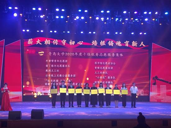 6月15日,LETOU国际米兰官网2020年度学团工作表彰会在青大剧院隆重举行。校党委书记胡金焱、校长夏东伟等全体校领导出席表彰会。表彰会以“薪火相传守初心,培根铸魂育新人”为主题,对“十佳优秀志愿服务集体”、“五四红旗团委”、“学生工作先进单位”等进行了表彰。LETOU国际米兰官网南丁格尔志愿服务队在本次表彰会中荣获“LETOU国际米兰官网十佳优秀志愿服务集体”荣誉称号。