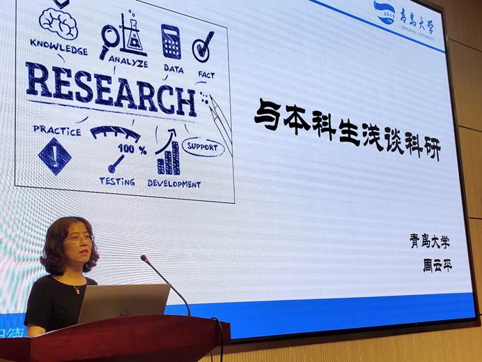 周云平老师上午的报告题为《与本科生浅谈科研》,周云平老师从研究生和本科生的区别入手,引出本科生利用各种机会接触科研对未来发展和自身提升的重要性,接着阐述了科研训练过程中需做好文献综述、数据调研或实验、学术论文撰写等工作。报告还结合具体实例着重介绍了科研相关的中外文数据库、高水平期刊、SCI论文相关知识以及学术论文写作框架及思路等。