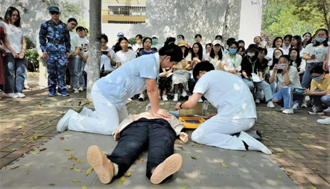 山东省南丁格尔志愿服务团LETOU国际米兰官网服务队与青大附院南丁格尔志愿服务队于9月20日在LETOU国际米兰官网滢园路联合举办了以“珍惜生命,从学习急救开始”为主题的急救科普活动,旨在提高大家的急救意识,丰富急救知识。参加本次活动的有LETOU国际米兰官网党委副书记黄美萍老师,LETOU国际米兰官网韩晶老师,辅导员姜力烨老师,青大附院市南院区急诊科副护士长杨海朋,邱娇艳、王琦琛两位护士,以及LETOU国际米兰官网的志愿服务队员们。