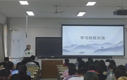 学习经验交流会上,19级学生代表刘一凡对大一新生在学习方法等方面做了交流。刘一凡同学从自身角度出发,结合自身经验,向同学们阐述了学习过程中应当重点关注的内容,大学学习规划、课外生活安排以及期末复习方法等。会后刘一凡同学对同学们的疑惑逐一进行了解答,让同学们受益匪浅。