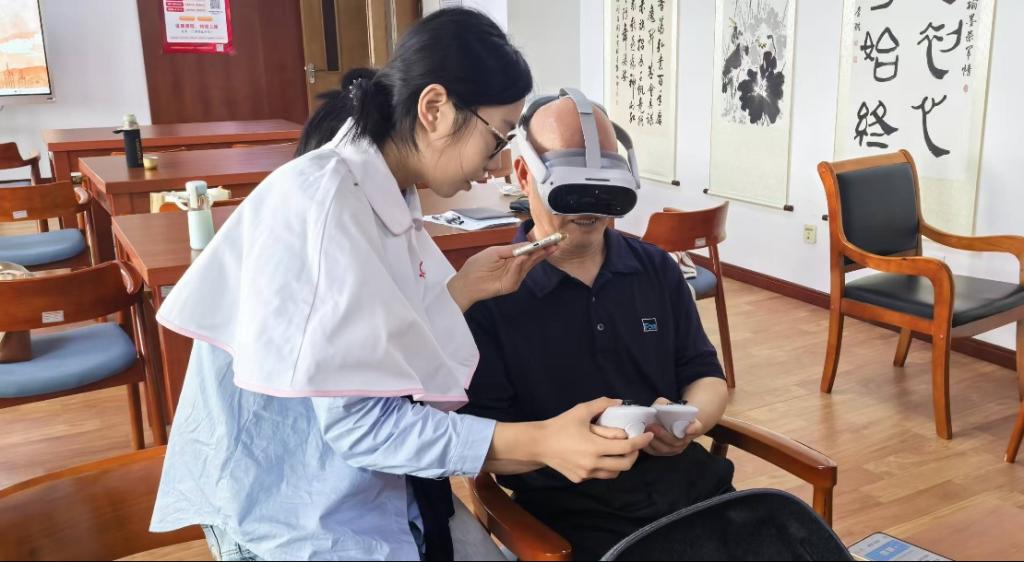 此外,为协助军休干部们做好健康管理,志愿者们还为退休干部提供了血压测量等免费健康体检,并根据体检情况给予针对性的健康指导。军休干部们还进行了VR设备的体验,锻炼了手脑眼的协调能力。