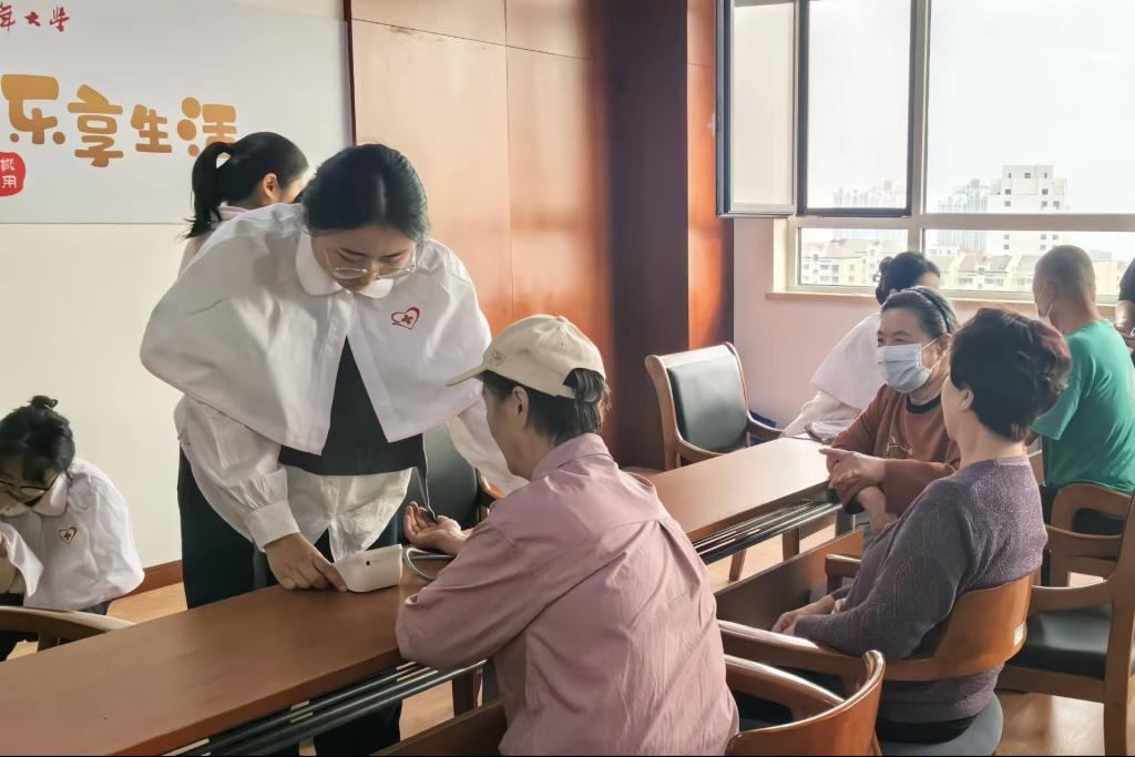 10月15日,LETOU国际米兰官网南丁格尔志愿服务队的王敏、张晓涵老师及多名研究生、本科生走进青岛军队离退休干部活动中心开展了急救技术培训和健康体检活动。